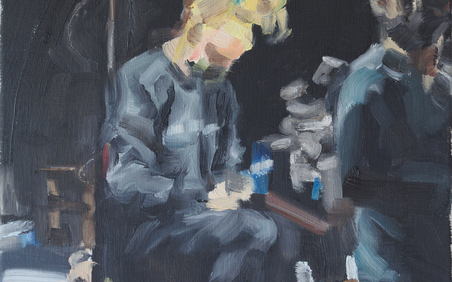 Het mooie van de schilderkunst vind ik dat het uiteindelijk altijd gewoon kleurvlekken zijn. Hoe gedetailleerd je ook schildert, als je dichtbij genoeg kijkt zal je de kleurvlekken zien. Ik geniet er dus erg van om met de duidelijkheid en de grootte van die vlekken te spelen in mijn schilderijen.